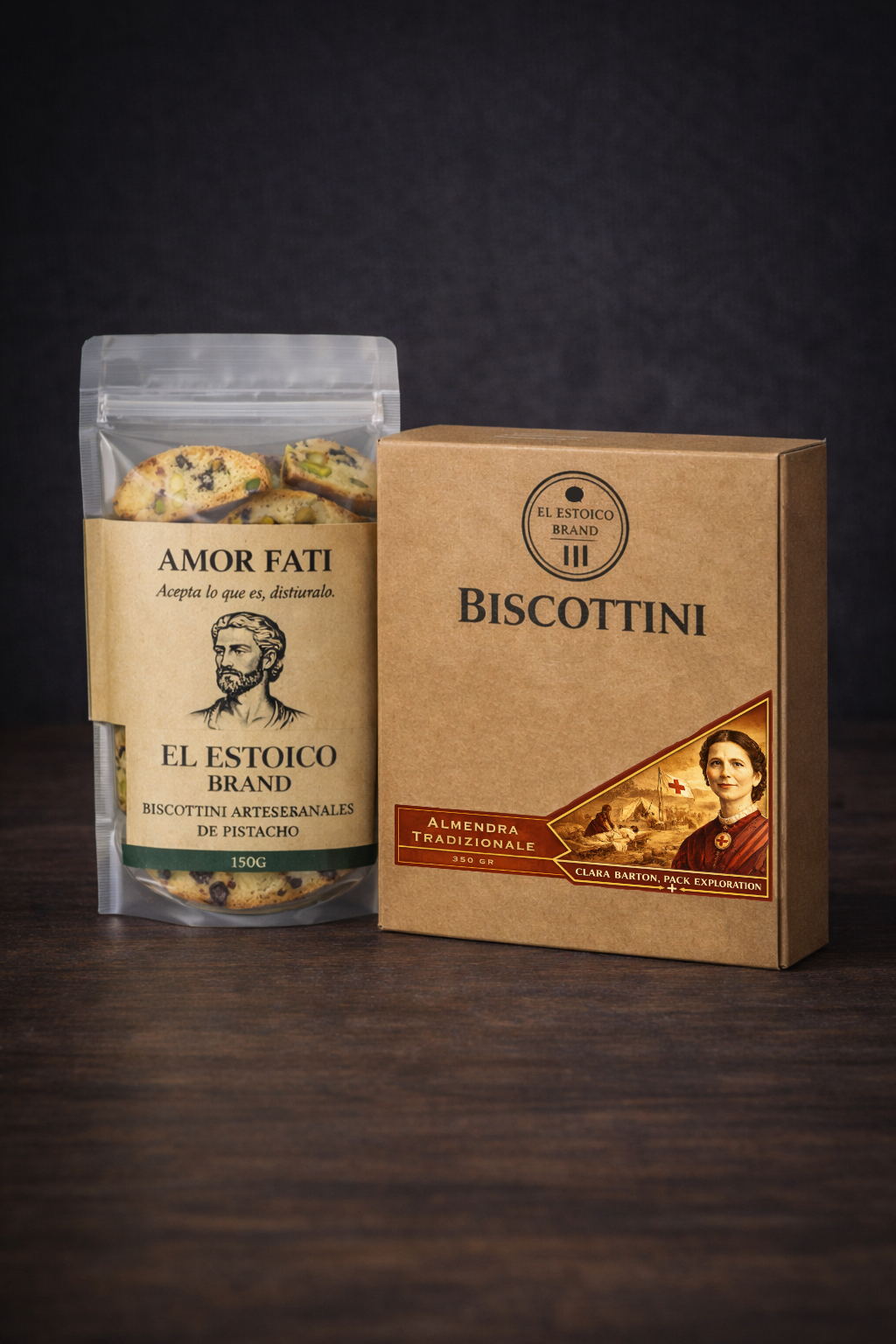 Pack inspirado en Clara Barton, combina 350 gramos de biscottini almendra tradizionale con 150 gramos de pistacchio, creando perfil suave, nutritivo y elegante ideal para compartir, regalar o disfrutar pausadamente, honrando cuidado, servicio y tradición estoica en cada instante cotidiano.