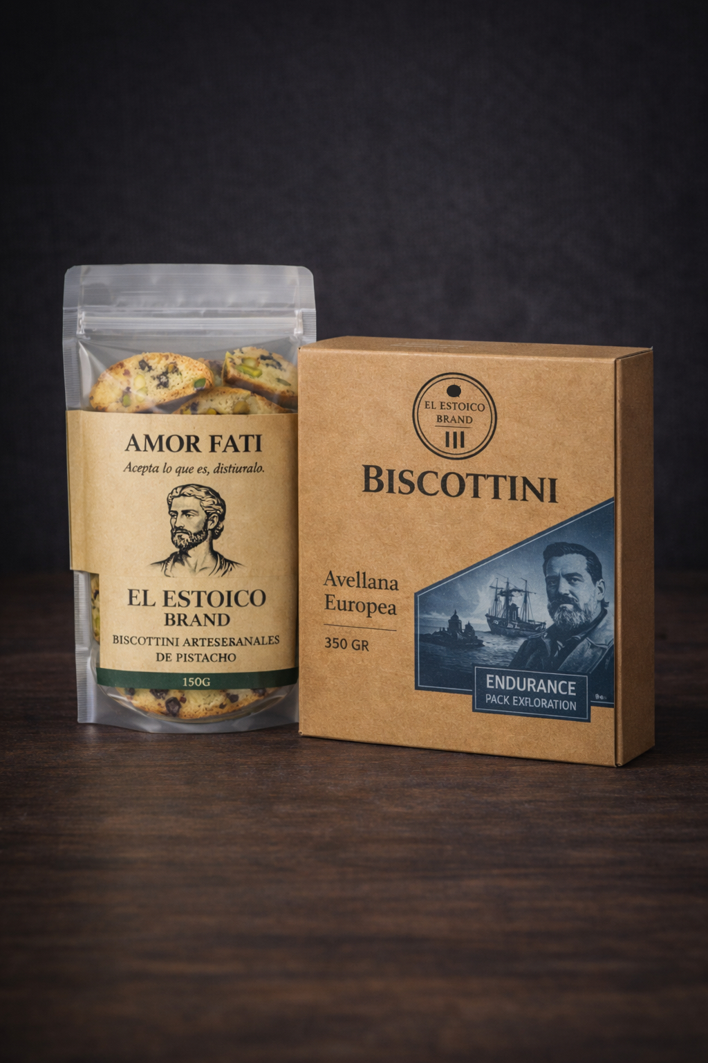 Pack inspirado en Schackleton, une 350 gramos de biscottini avellana europea con 150 gramos de pistacchio, logrando mezcla robusta, aromática y reconfortante para expediciones, trabajo intenso y momentos de pausa consciente, fiel al carácter artesanal y disciplina estoica diaria, compartida.