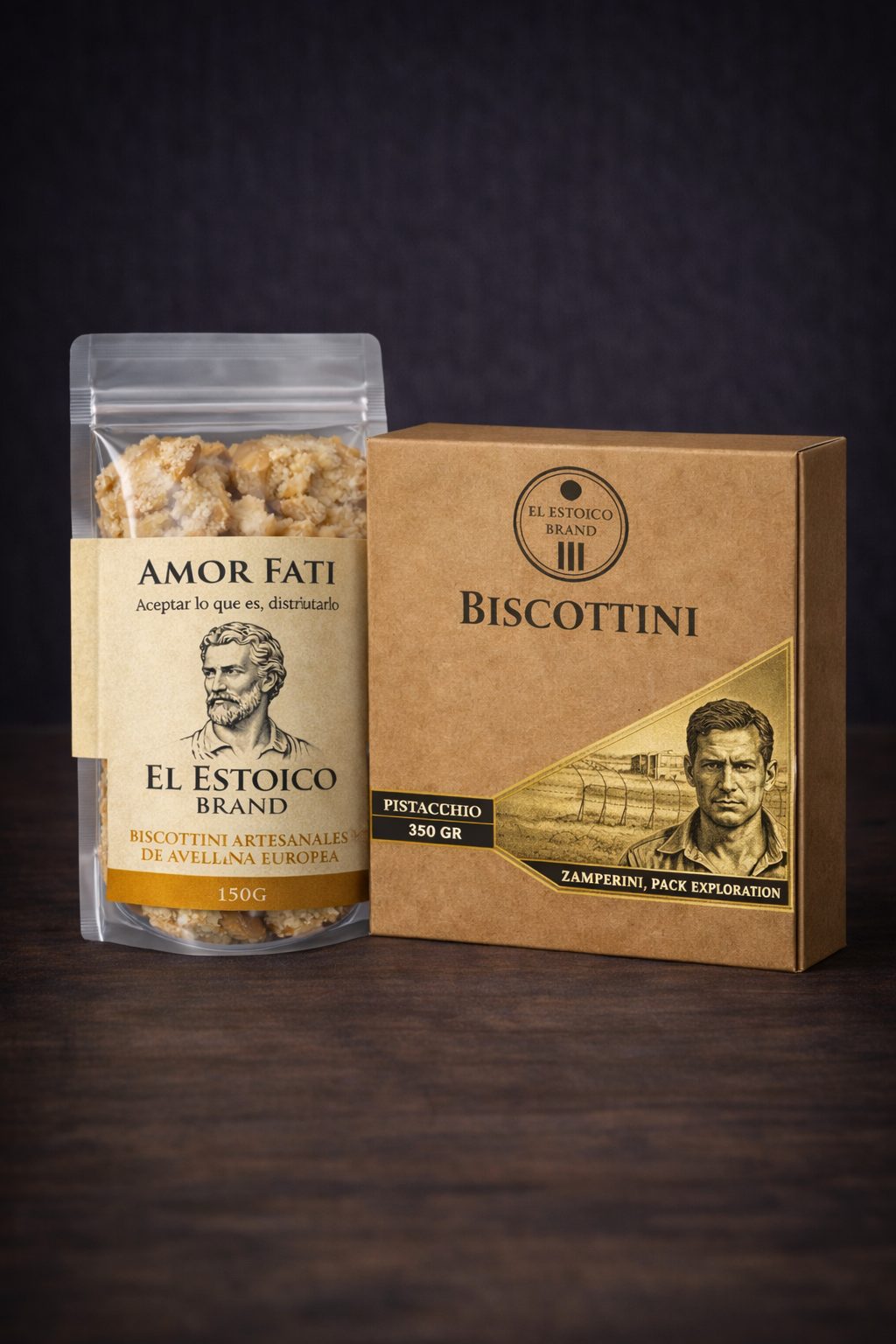 Pack inspirado en Zamperini, combina 350 gramos de biscottini pistacchio crujientes con 150 gramos de avellana europea, ofreciendo equilibrio, energía y sabor para acompañar café, viajes y desafíos diarios con espíritu resiliente, artesanal y auténticamente estoico, en cada bocado compartido.